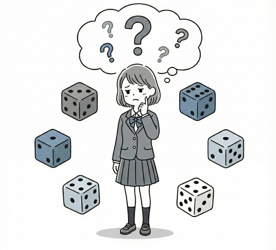 しかし、これはあくまで「平均」であって、「必ず1回出る」という保証ではありません。6回振っても一度も「1」が出ない可能性は十分にありえます。