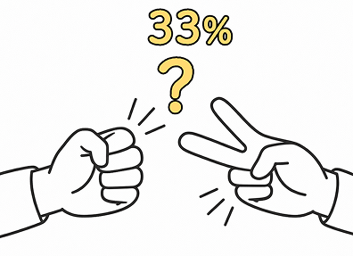 サイコロを振って「1」の目が出る確率は1/6(約17%)。でもこれも「6回振れば1回は出る」という意味じゃない。あくまでも「長い目で見たときの傾向」を表しているんだ。