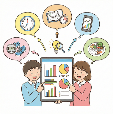 起床時間、勉強時間、スマホの使用時間、食べたもの、歩数——こういう「自分のデータ」を集めて分析すると、意外な発見がある。