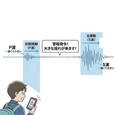 大きな揺れ(S波)が来る前に警報を出しているんだ。