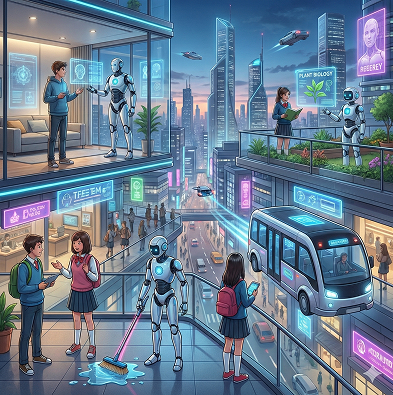 10年後、20年後の社会はどうなってるだろう?自動運転の車が当たり前になって、移動中に勉強や読書ができる。家に帰る前にスマホで「エアコンつけて」って指示すれば、AIが部屋を快適に準備してくれる。病院では、AIが膨大な医療データを瞬時に分析して、お医者さんの診断をサポートする。これ、もう一部は実現し始めている。